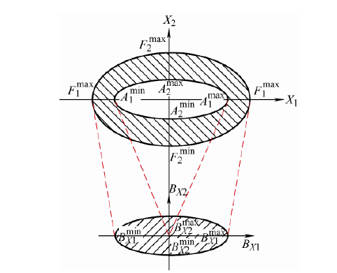 (5) ${{D}_{{{X}_{n}}}}=\left\{ \begin{matrix} F_{n}^{\max }-A_{n}^{\max } & {{X}_{n}}>A_{n}^{\max }\ \ \ n=1,2,\cdots ,k \\ {} & {} \\ A_{n}^{\min }-F_{n}^{\min } & {{X}_{n}}<A_{n}^{\min }\ \ \ n=1,2,\cdots ,k \\\end{matrix} \right.$