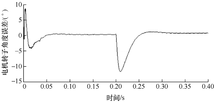 仿真结果表明,在负载转矩为10 N·m情况下,进行零速带载起动,在t =0.1 s时,达到给定转速,动态响应迅速;在t =0.05 s时,位置收敛稳定,位置误差约为0.4°,稳态跟踪性能良好。