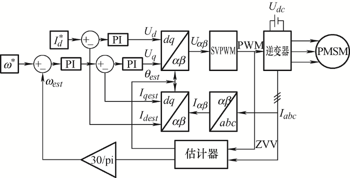 基于非注入法在零矢量区间的转子位置估计控制系统结构框图