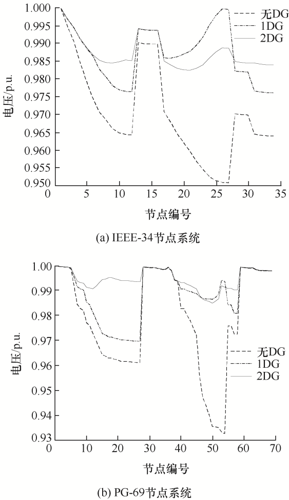 | 图15 DG接入下的节点电压分布对比 |