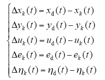 设采用迭代学习律(4)所示的开环PD型迭代学习律,对于任意给定的初始控制u0(t),及每次运行的初始状态x0(t),由此得到的序列{xk(t)}k≥0,{yk(t)}k≥0,{uk(t)}k≥0对t一致收敛到xd(t)、yd(t)、ud(t)的充分条件为谱半径