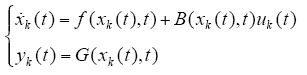 式中,时间变量t ∈ [0,T],状态向量x(t) ∈ Rn,输出向量yk(t) ∈ Rm,控制变量uk(t) ∈ Rr;f (x(t),t) : Rn× [0,T]→Rn;B(x(t),t) : Rn×[0,T]→Rn;G(x(t),t) : Rn×[0,T]→Rm;G(x(t),t) : Rn×[0,T]→Rm,关于x,t可微。