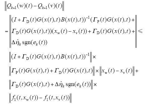 若ΓD、Gx(t,x(t))、B(t)为常数,则ρ(I + ΓDGx(t,x(t)) B(t)L(t)) - 1<1是系统收敛的充分必要条件,则当k→∞时,yk(t)一致收敛于yd(t)。