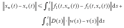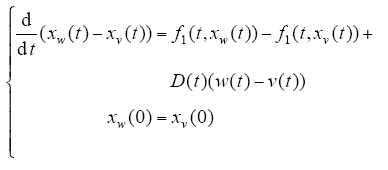 其中,Cr[0,T]分别为系统方程式(1)在初态控制取w、v时的解,故有