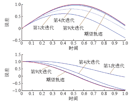 仿真结果表明,对于非线性系统,采用带自适应的开环PD型迭代学习控制方法,经过9级学习后就能够很好地跟踪期望轨迹。