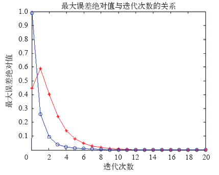 | Fig.2 The maximum absolute error of the open-loop PD type iterative learning control algorithm with adaptive learning |