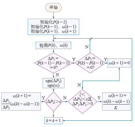 随着风机角速度的增大,风力机的输出功率先上升后下降,在最佳角速度处存在一个最大值,定步长爬山搜索法虽然能搜索到最大功率,但搜索精度不够,对于惯性较大的系统,很难准确跟踪且容易在最大功率点产生波动,因此又有变步长爬山搜索法,但变步长爬山搜索只适用于角速度变化量不为零的系统,其自身控制算法的局限性导致功率跟踪不够准确平稳,这里提出了一种优化的变步长爬山搜索算法。