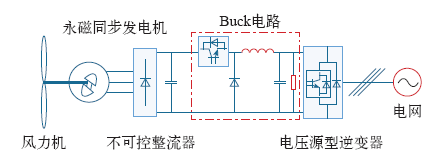 爬山搜索算法的原理是通过实时调节步长准确跟踪最大功率,比较适合于小型风力发电系统。此处以小型直驱式永磁风力发电系统[6-7]为模型,系统的拓扑结构如图1所示。