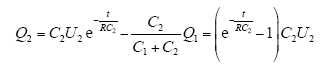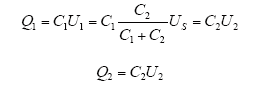 t时间后再次合闸,由于线路经直流低阻抗放电,使得C1上的电荷加到C2上,即