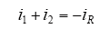 高压端单相对地短路时,高压端子直接接地,ECVT等效电路如图4所示,设分压电容上C1和C2的电压分别为UC1、UC2,短路瞬间C1、C2上的电压分别为UC1(0+)和UC2(0+),取向下为电流的正方向,C1、C2上通过的电流分别是i1、i2,R上通过的电流为iR,C1、C2的串联内阻分别是rs1和rs2。