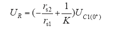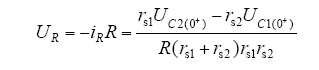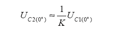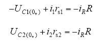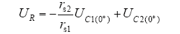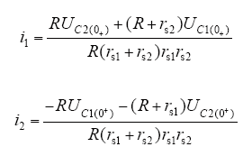 短路瞬间,UC1(0+)为负值,R上电压初值取决于两电容的内阻之比,当rs1 = Krs2时,UR上没有冲击电压,最为理想。