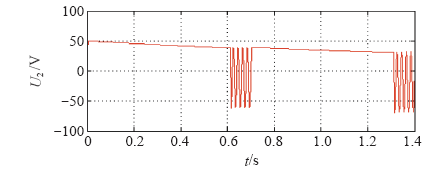 由图9可见,此时有很大的负向冲击电压,此电压在很短的时间内释放,在此过程中,由于电压过高可能会对电路器件造成不可恢复的损伤。