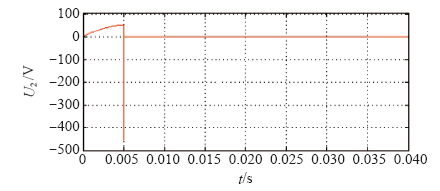 | Fig.9 Waveform of secondary side voltage varying with time in the primary side short-circuit moment(R = 300kΩ,rs1 = 0.1Krs2) |