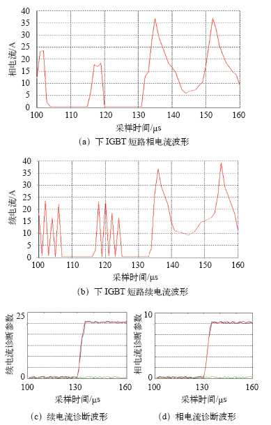 Fig.10 Waveforms of diagnostic and currentsofdown IGBT short-circuitfault |