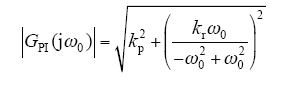 可以看到,由于控制器传递函数的jω轴上加入2个固定频率的开环极点,形成该频率下的谐振,使得PR控制器在基波频率处的增益趋近于无穷大。