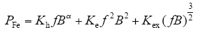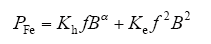 对电机中常用的硅钢薄板,当频率不是很高时,如工频或几百赫兹以下,通常取α = 2,因此铁耗又可简化为