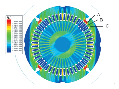 定子轭部存在4 个螺钉孔时电机磁通密度分布