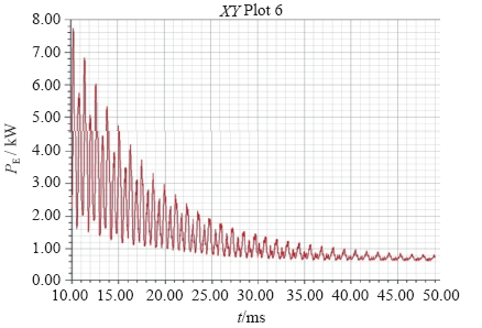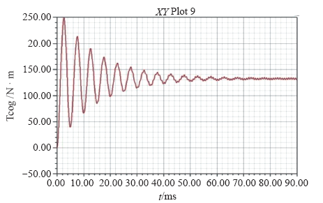 接入外电路后,给电机电压源激励,并设置额定功角,对电机的输出电磁转矩进行了仿真计算。在额定状态下,电机转速为25 000r/mim,此时电机输出电磁转矩为132N·m,满足设计的功率输出要求。如图9所示,经计算,稳态时转矩脉动率只有2.26%,说明电机在额定状态下,具有良好的输出特性。