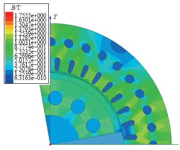从磁密云图和定子铁心损耗数据结果来看,处于比较合适的范围,既实现了铁心材料有效利用,又保证铁心损耗控制在可接受范围内。