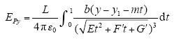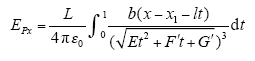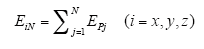 According to the superposition theorem, the electric field strength is generated by three-phase conductor segments, and they are added in sequence in X, Y, Z direction. The electric field strength generated by all conductor segments at point P in each direction is expressed as