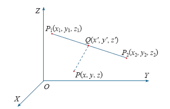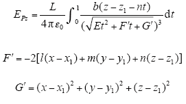 Suppose a linear charge L (as shown in the Fig.1) is in space with the two ends coordinates P1 (x1, y1, z1), P2 (x2, y2, z2), the linear charge simulation parameters are given by