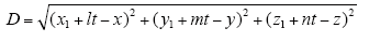 Where: D is the distance from the source point to the field point, if u = Lt, then