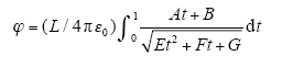 Therefore the potential of the linear charge L at any point in space is deduced as follows