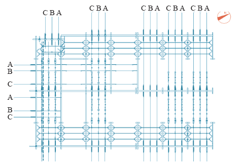 Now taking a 500kV switch yard in the substation as an example for analysis and calculation, the plane configuration of substation is shown in Fig.2. The vertical dashed lines represent position of the set observation lines.