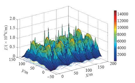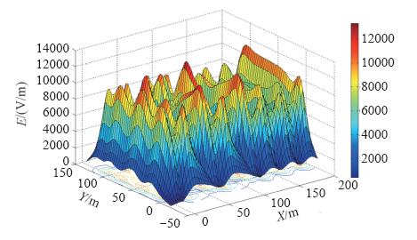 Finally, according to the electric field intensity of any point in space in X, Y, Z direction, the total electric field strength E can be calculated
