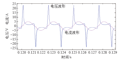 Fig.7 Simulation waveform of AC arc voltage and current |