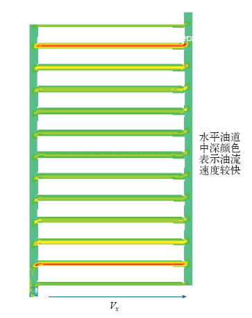 图3中,箭头所指为本台产品额定运行时的绕组部位的油流速工作点。