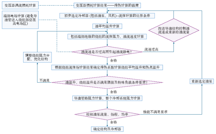 强油导向变压器流体力学及传热计算框图