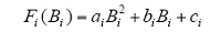 式中,Fi为第i台磨煤机耗电功率,kW;Bi为第i台磨煤机给煤量,t/h;ai、bi、ci分别为第i台磨煤机特性函数二次项系数、一次项系数、常数。