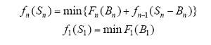 令最优函数fn(Sn)表示以数量为Si的出力分配给第一台磨煤机至第n台磨煤机所得的最小电耗量。数学描述如下:
