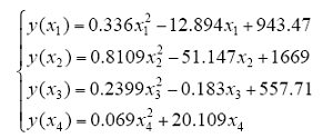从运行报表里选取部分典型数据,这些数据均匀地分布在磨煤机出力范围内,首先对原始数据进行初步处理,去掉一些不合理的坏值,然后再利用剩下的数据进行拟合。首先利用软件对参考数据进行曲线绘制,通过趋势曲线找到合适的拟合函数,最终确定函数的形式为