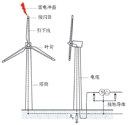 图10 风电机组遭受雷击后雷电流通路 |