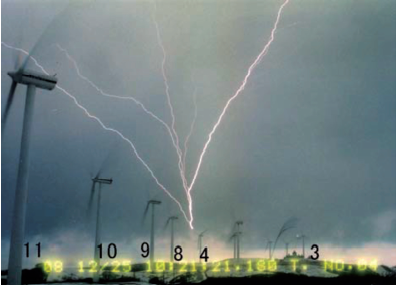 Fig.7 Upward lightning stroke induced by wind turbines |