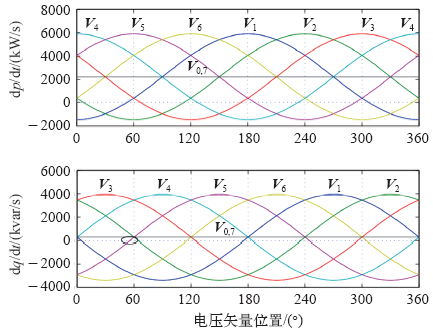 | 图4 所有扇区不同电压矢量的有功/ 无功变化率 |