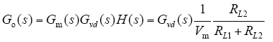 式中,H(s)为反馈分压网络的传递函数,是对系统输出量的反馈采样;Gm(s)为PWM脉宽调制器的传递函数;Vm为PWM调制器中锯齿波幅值。将上述各环节结合得系统未补偿的原始回路增益函数