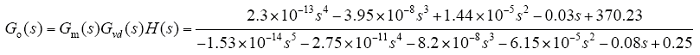 式(12)为图中系统回路增益函数,Gc(s)是误差E(s)到控制量Vc(s)的传递函数,即为本章将要设计的补偿网络传递函数。Go(s)为原始回路增益函数,表示控制信号Vc(s)至反馈信号B(s)间的传递函数。其中传函Gvd(s)为变换器开关占空比小信号变化量d(s)对变换器输出电压Vo(s)的传递函数,见式(11)。
