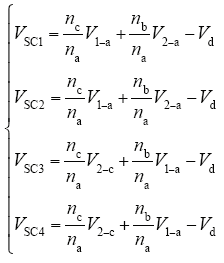 设变压器的匝比为na : nb : nc,其中nb = nc = ns,由式(1)和式(5)可得,各超级电容端电压表达式为