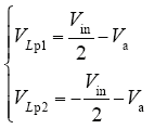 半桥变换器在前后两个半周期内的工作原理相同,这里只对t0~t2阶段进行分析。假设半桥变换器无损耗,在模态1和模态2中,变压器漏感Lp上的电压分别为VLp1和VLp2,则有
