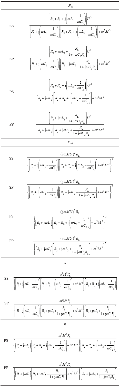 本文从等效电路的角度对磁耦合谐振无线输电系统的四种拓扑结构进行了详细的分析,得到以下结论: