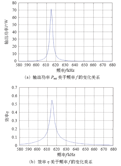 由图5可知,在谐振频率点下,输出功率和效率同时达到最大值。