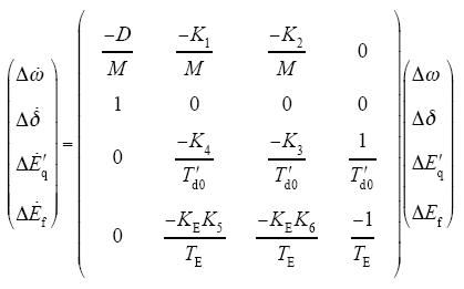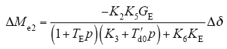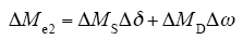 进一步分析可得,系统中电压调节器等所导致的磁链变化所产生的转矩ΔMe2包括与Δδ成比例的同步转矩ΔMSΔδ及与Δω成比例的阻尼转矩ΔMDΔω,即