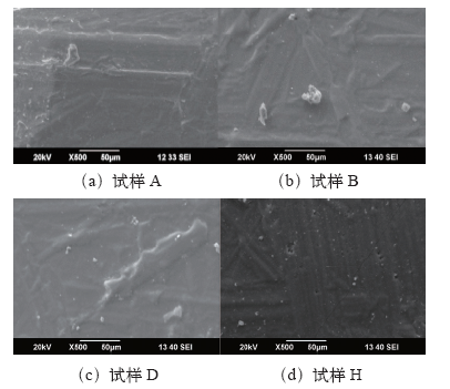 对SEM各级放大倍数图像进行观察后发现SEM放大倍数取为500倍能较为清晰地观察到表面情况。典型试样的SEM放大倍数为500时的表面情况,如图5所示。