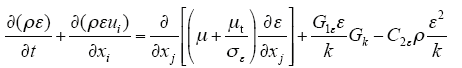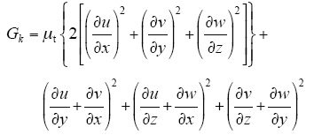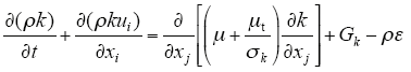 式中,μt为湍动粘度;i、j为下标,i, j=x, y, z且i≠j[10]。