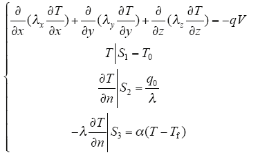 式中,λx、λy、λz分别为x、y、z方向上的导热系数;q为热源密度,是电机各部件单位体积产生的损耗;α为对流散热系数;Tf为周围流体的温度。