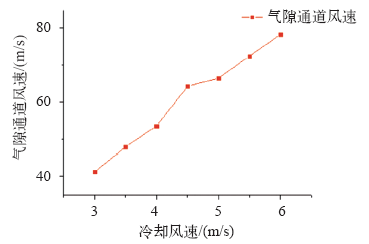 | 图7 气隙通道风速随冷却风速变化示意图 |