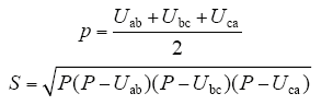 Solve the Equ.(2) , then add all the three equations of Equ.(2) , we will get Equ.(3) . By taking use of formula of Equ.(4) and Equ.(5) , triangle space formula and Heron formula, we get the functions of Equ.(6) and solution of Equ.(7) , then by using the cosine theorem we get Equ.(8) and Equ.(9) . Through the calculation above, we can get precise phase voltage value and phase angle value of three-phase three-wire grid connected system. Then Use inverse current control strategy to achieve grid connection.